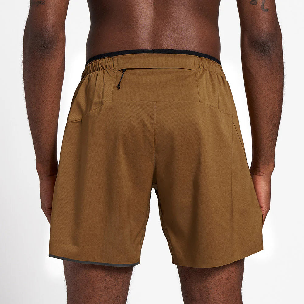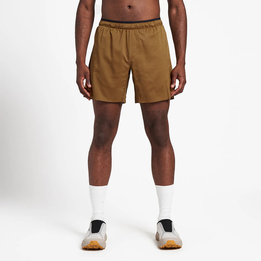 Introducing Ciele Athletics' DLYShort 7" Linerless shorts - trail running shorts designed for versatility and comfort. Crafted from a fully recycled, mechanical stretch, lightweight woven ripstop fabric, these shorts are perfect for runners who prefer layering over their favorite tights or simply enjoy the freedom of a linerless design. The 7-inchinseam offers optimal coverage without restricting movement, while the PFC-free DWR finish ensures they stay light and dry in various conditions.