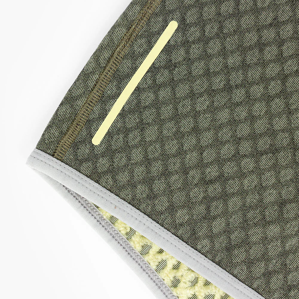 Warm, lightweight fleece with merino wool collar, reflective details, and embedded carbon for breathability and odor resistance.