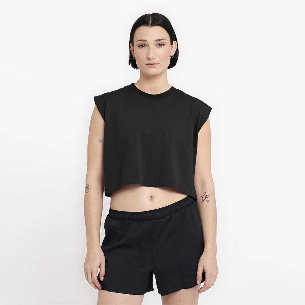 A clean, cropped tank made from recycled cotton. Breathable, comfortable, and built for movement from early miles to late afternoons.
