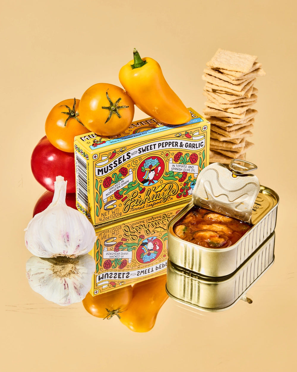 Bold, balanced, and packed with protein, Fishwife’s sweet pepper and garlic mussels are a flavorful companion to any meal.