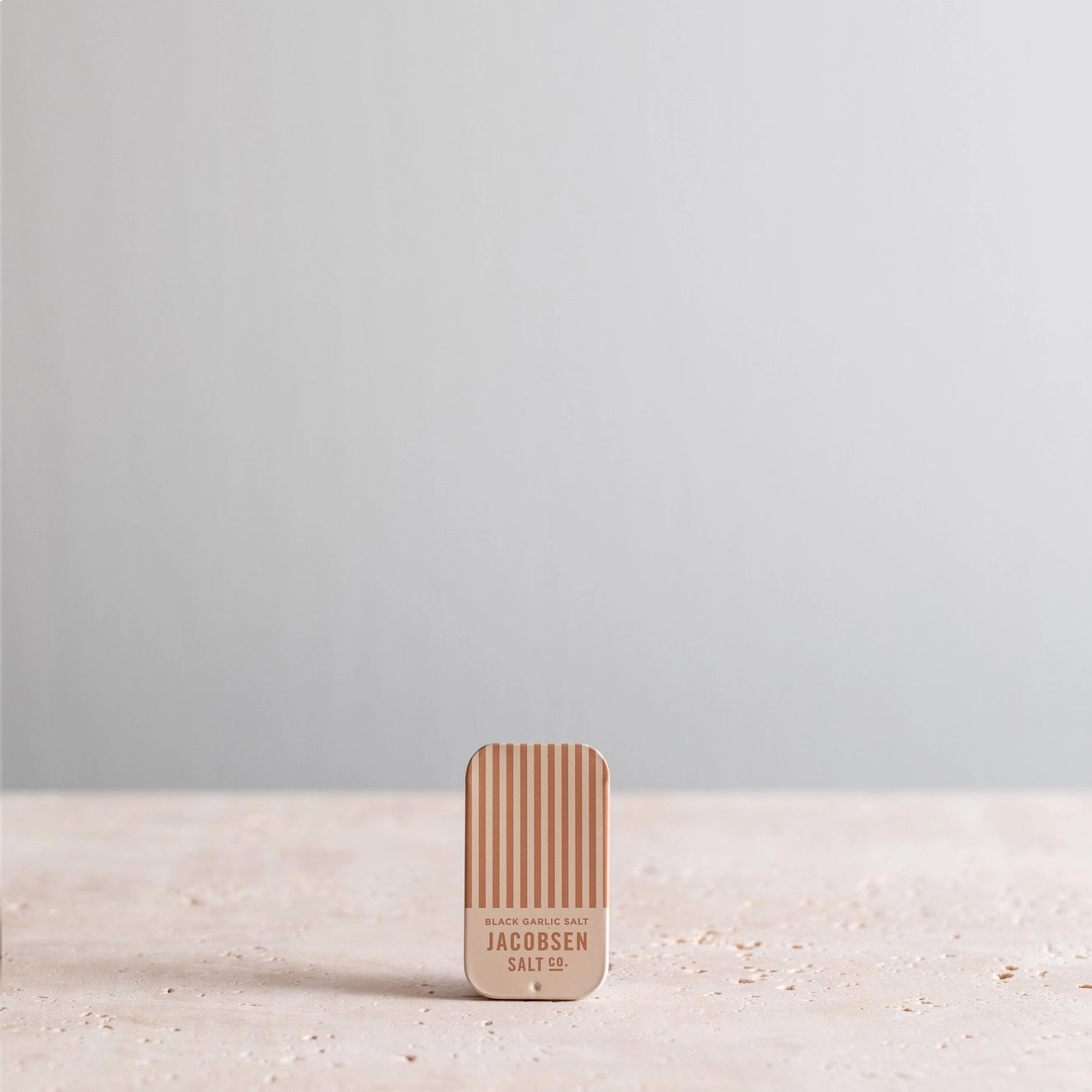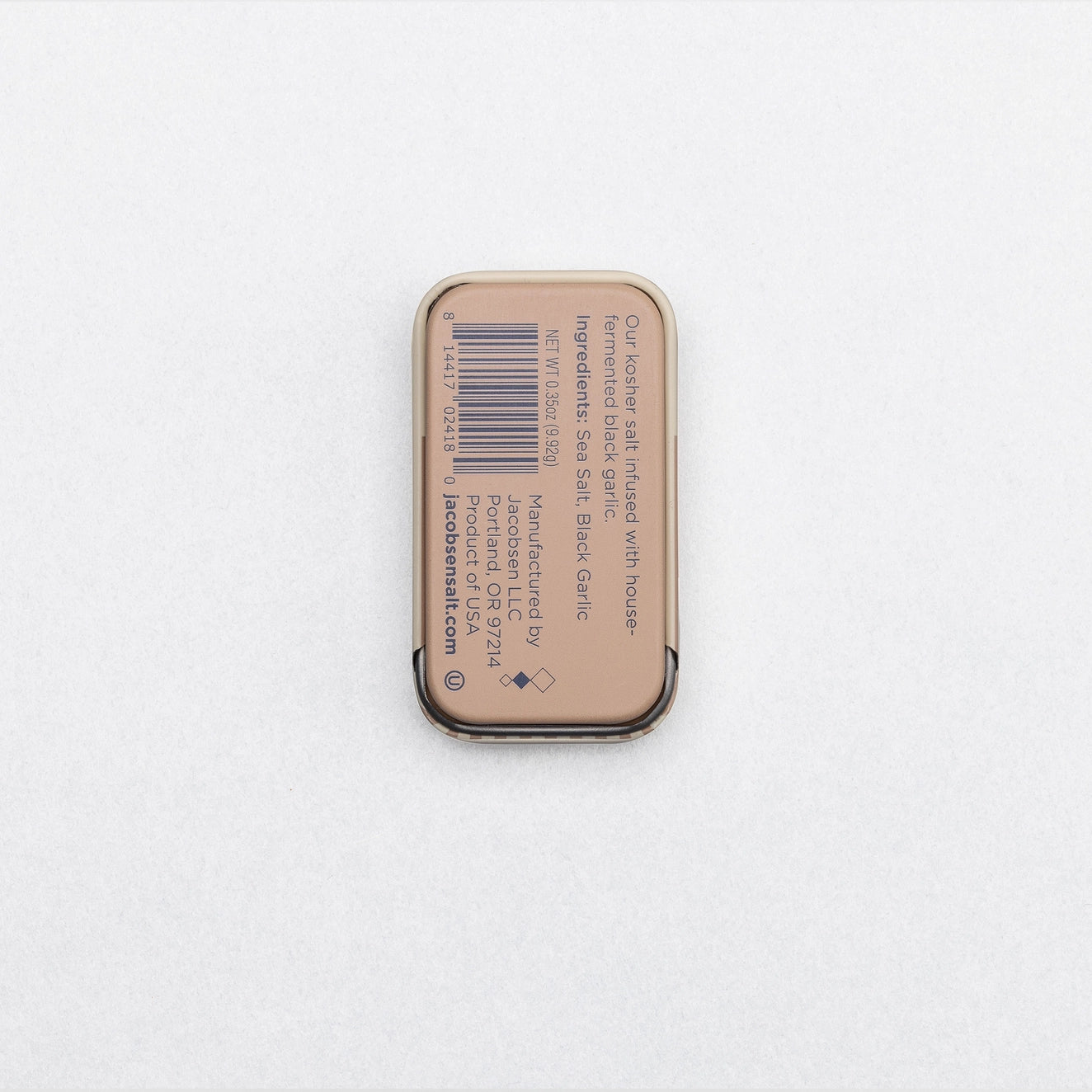 Kosher sea salt blended with fermented black garlic. For rich, slightly sweet flavor in a travel-ready slide tin.