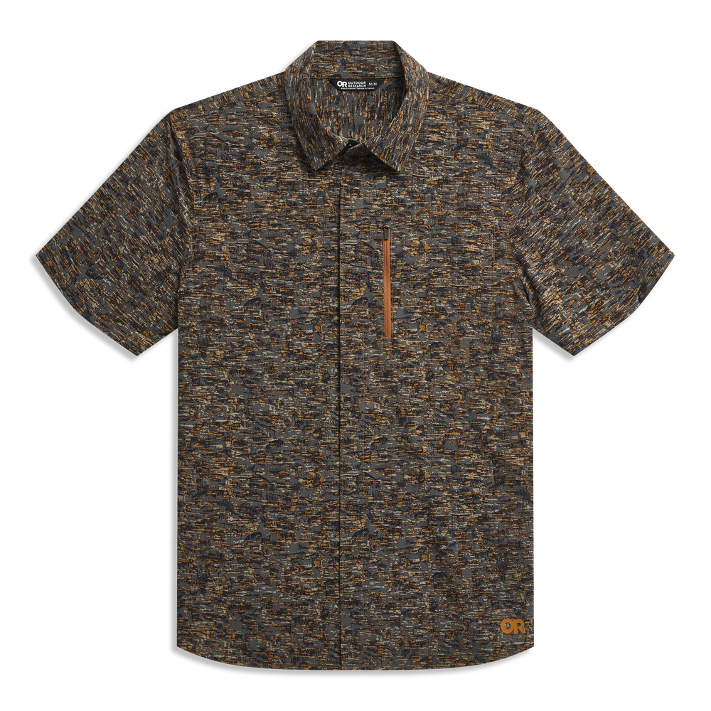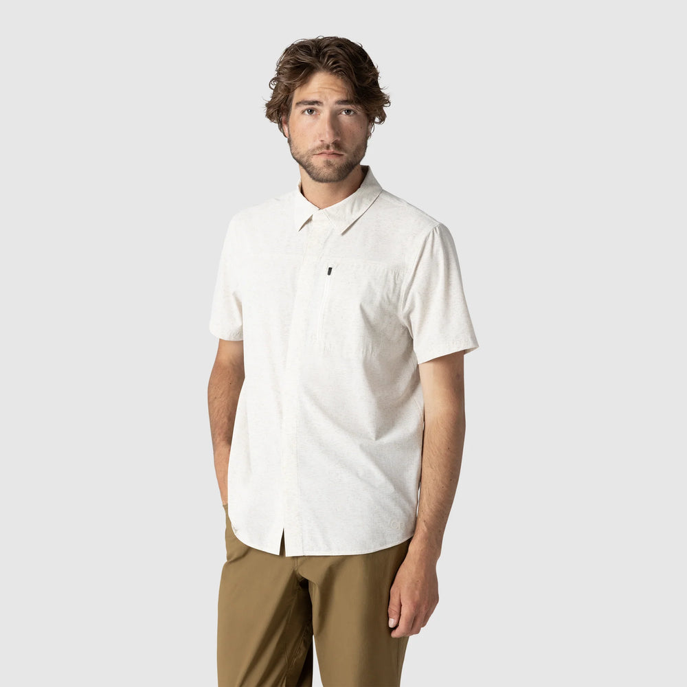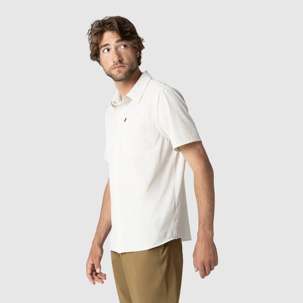 The Outdoor Research Astroman Short Sleeve Sun Shirt is made for long days in the sun. Lightweight and breathable, it dries fast and stretches as you move. Built from recycled nylon with UPF 30 sun protection to help shield you from harsh rays. A clean snap front and zip chest pocket keep things simple and functional. Comfortable for hiking, running, or travel in warm weather.