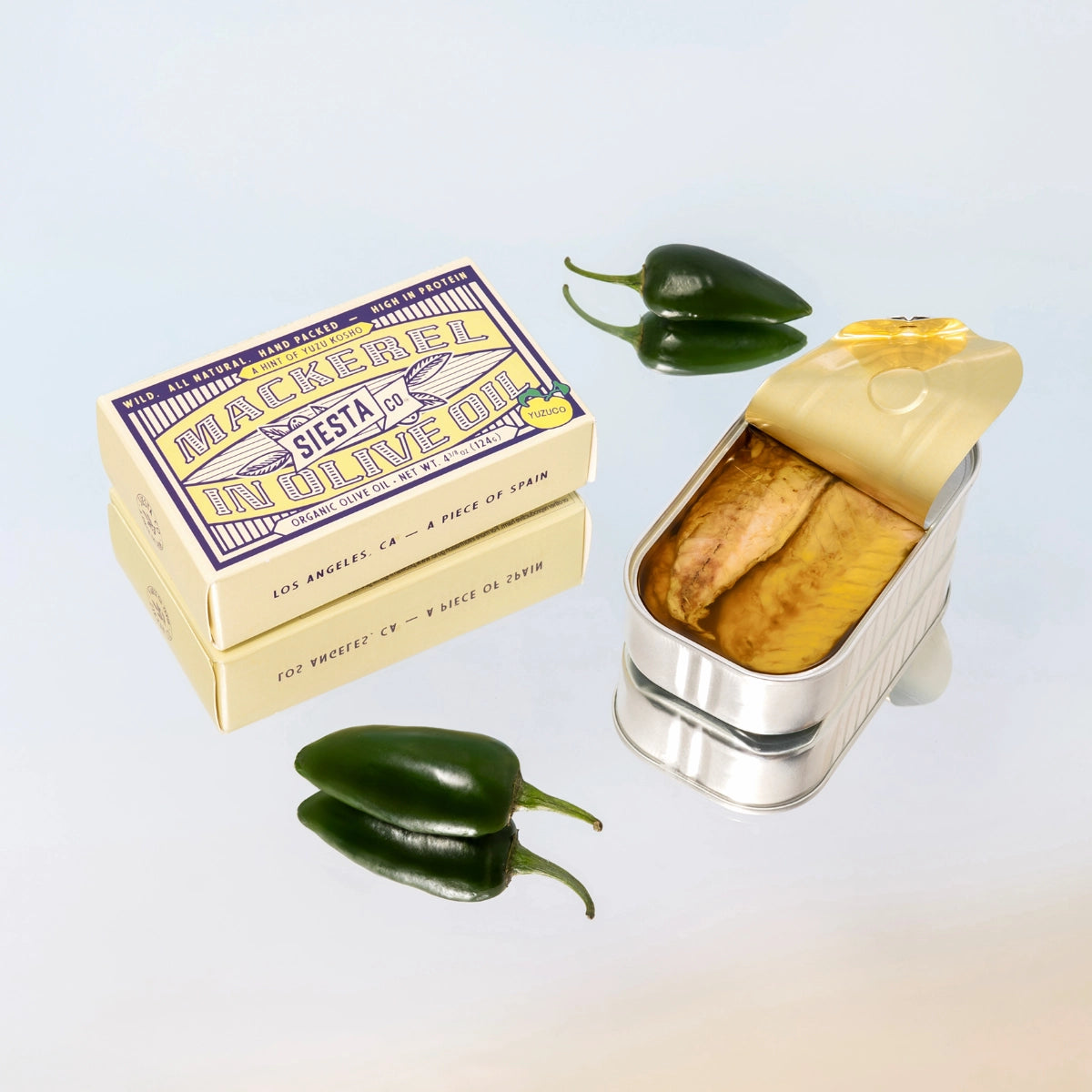 A bold meeting of Spanish and Japanese flavors, Siesta Co.'s Mackerel with Yuzu Kosho delivers savory richness with bright citrus heat. Sustainably caught off Spain’s coast, each fillet is hand-packed and gently seasoned with a zesty blend of yuzu citrus and chili peppers. Flaky, flavorful, and full of character, it’s as at home on a bed of rice as it is enjoyed straight from the tin. This one’s for flavor chasers looking to elevate their pantry with something unexpected.