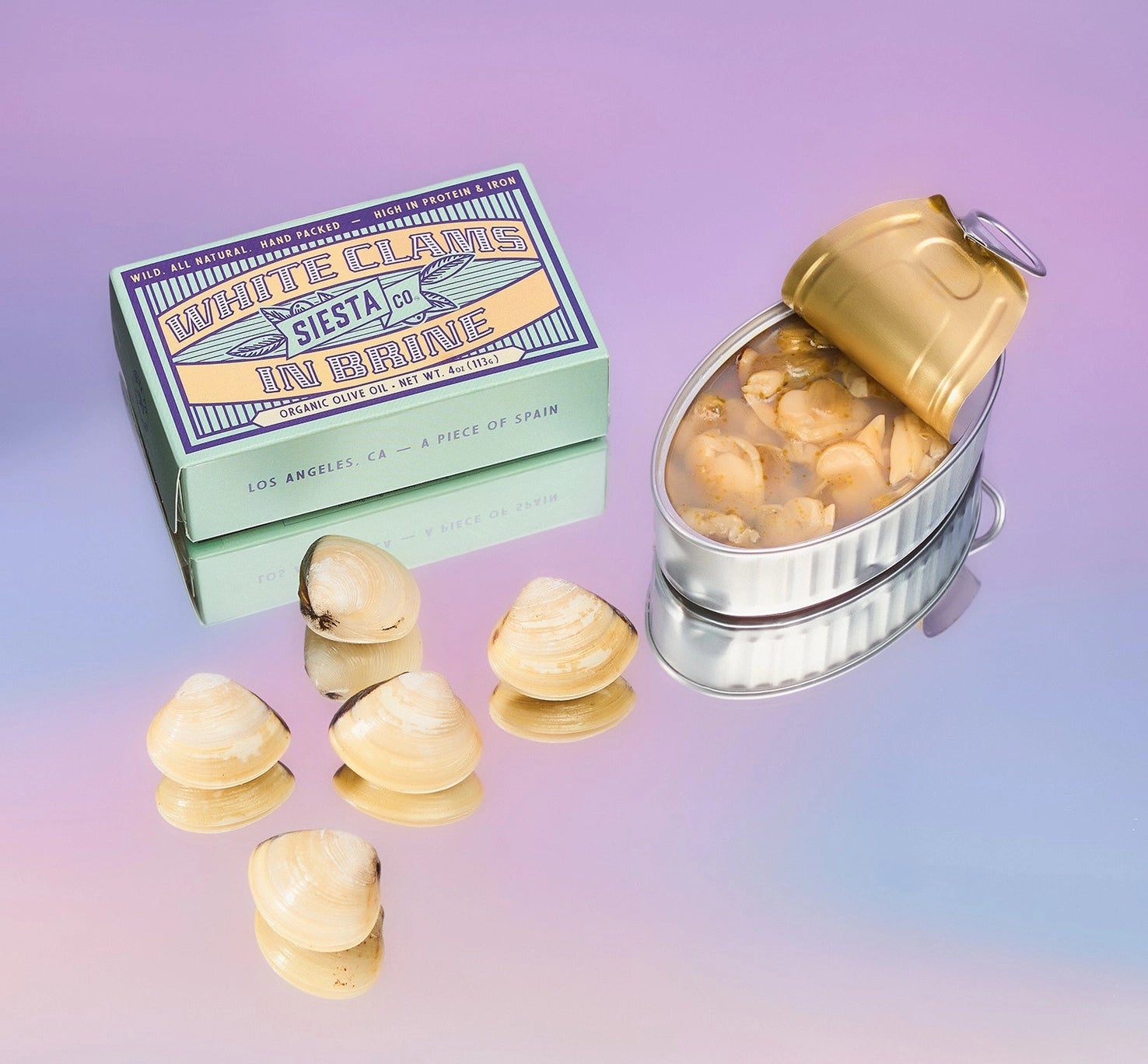 Delicate and pure, Siesta Co.'s White Clams in Brine are sourced from the northern coasts of Spain and France, where cold waters yield sweet, tender shellfish. Packed in a refined brine with just a kiss of sea salt, each tin offers a clean, ocean-fresh taste that speaks for itself. Try them chilled with a splash of sherry vinegar or tucked into a seafood salad for a coastal classic that’s both simple and elegant.